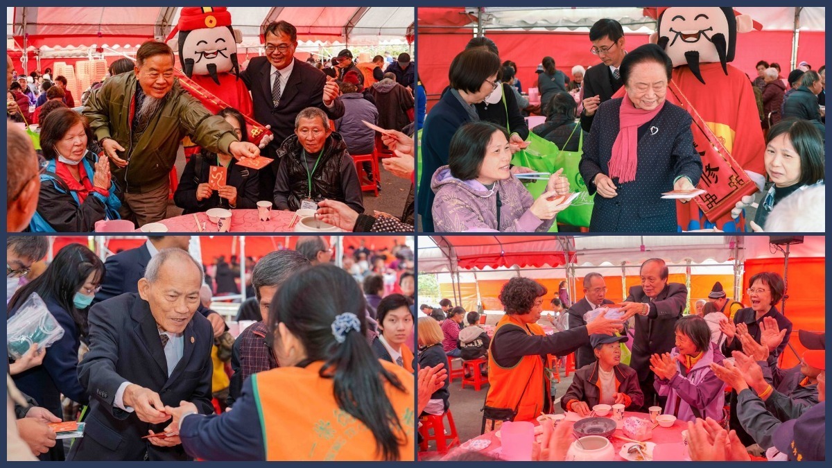 今年度按例頒發五個弱勢團體年節關懷金,支持贊助所辦理的方案與服務。董事貴賓們一桌一桌發送紅包卡與禮物、跟加官及財神爺的合影,將一整年的財運喜氣帶回家,祈願新的一年都能平安順利,好運都能「蛇」進來,心想事成。