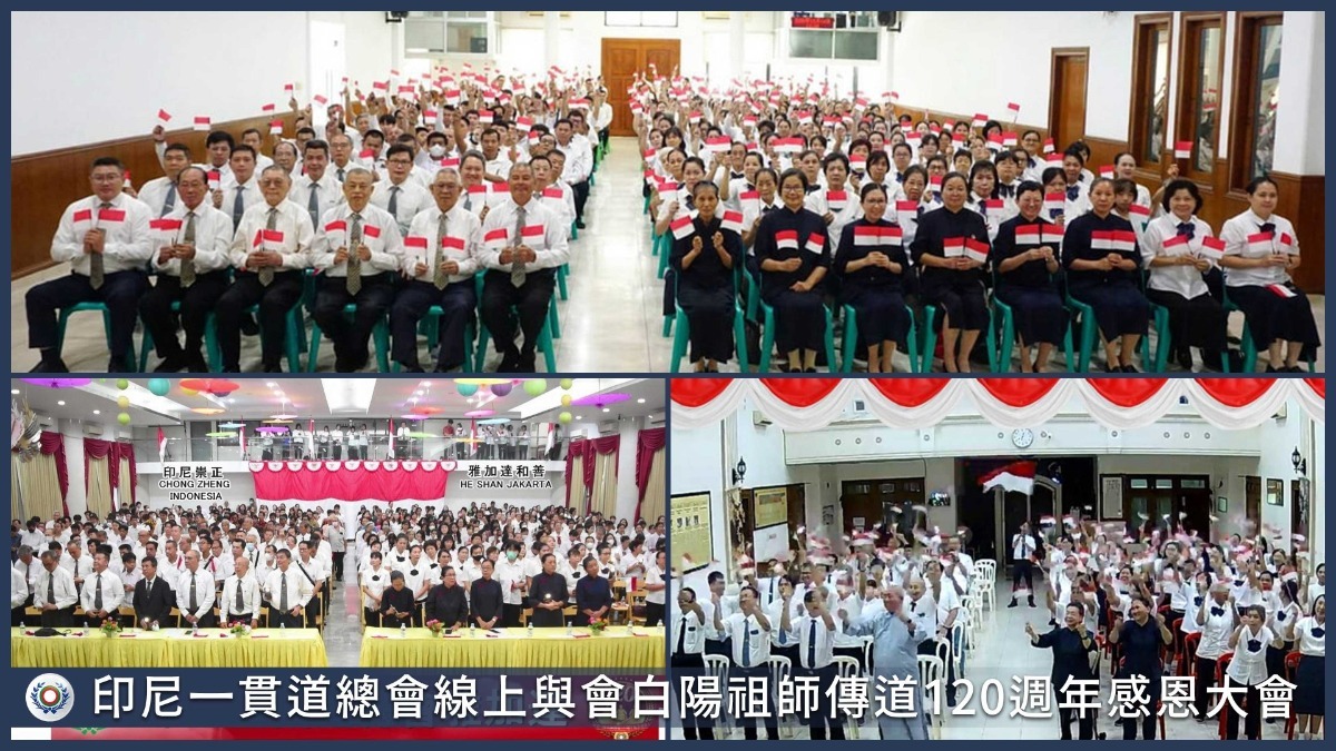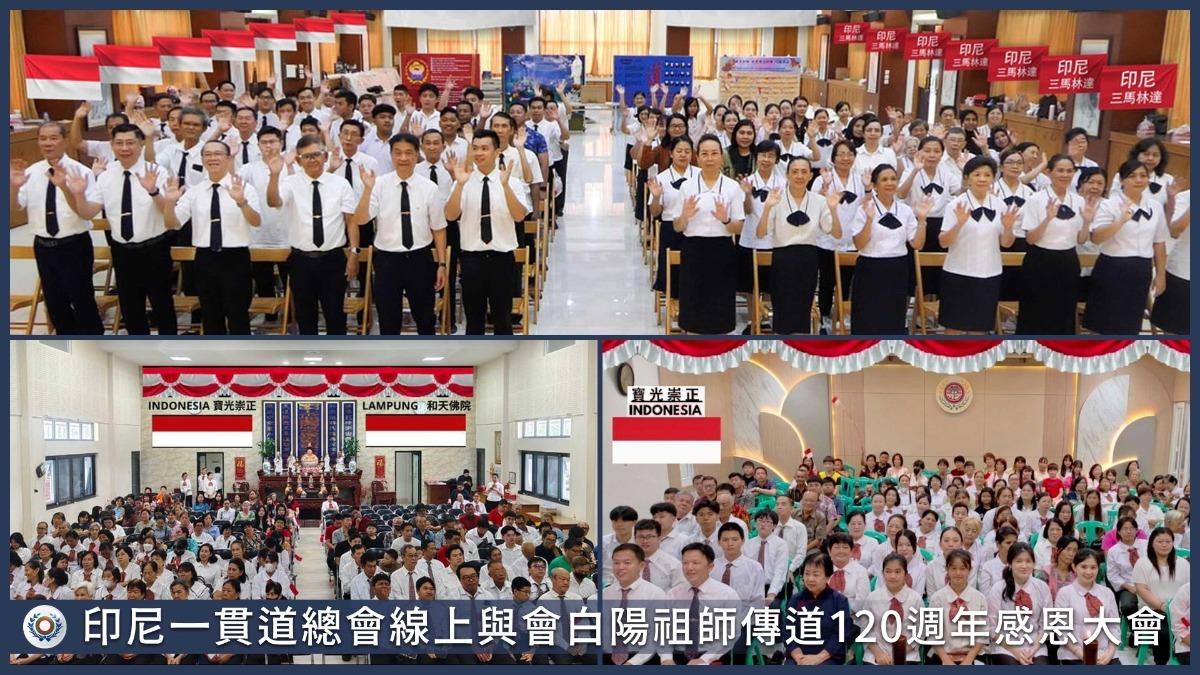 謹以至誠之心,感恩上蒼至高無上的聖恩,並虔誠叩謝老祖師,蒙其慈悲加被、諄諄引導與無盡大愛,使「白陽老祖師弘道120週年紀念盛典」得以莊嚴舉行,圓滿順遂。2025年12月14日,透過科技的輔助,讓遠在海外的印尼道親得以跨越空間限制,與全球道親同霑法喜、共沐道恩。