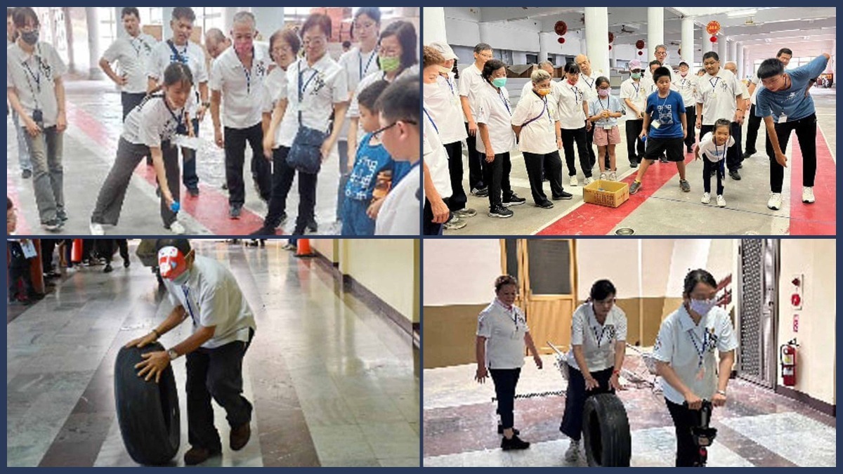 「創意大隊接力」關:兩組同時競賽,以接力方式完成不同關卡任務,例如:袋鼠跳、扇子搧氣球前進、坐烏龜車划到下一關等等,這一關各組全數回到香客大樓七樓進行,過程中歡笑不斷,滿滿的加油聲與歡呼聲,所有道親共同度過了一個美好又愉快的下午。