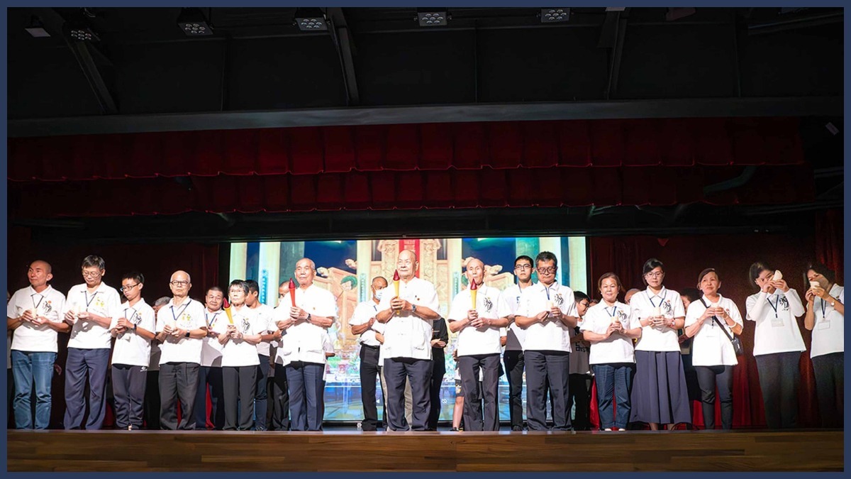 熱鬧過後,主持人邀請現場道親靜下心來,回顧疫情最嚴重的時候,共同感恩無名英雄,祝福祈禱,世界大同,同時,伴隨「感恩前人」與「感恩道場」兩首歌曲,感懷前人輩辛苦付出,為道披荊斬棘,披星戴月,耕耘不懈,後學們才有機會在如此舒適的環境修辦,天時緊急,更當精進努力,不可稍有懈怠,以報天恩、師恩、前人恩。