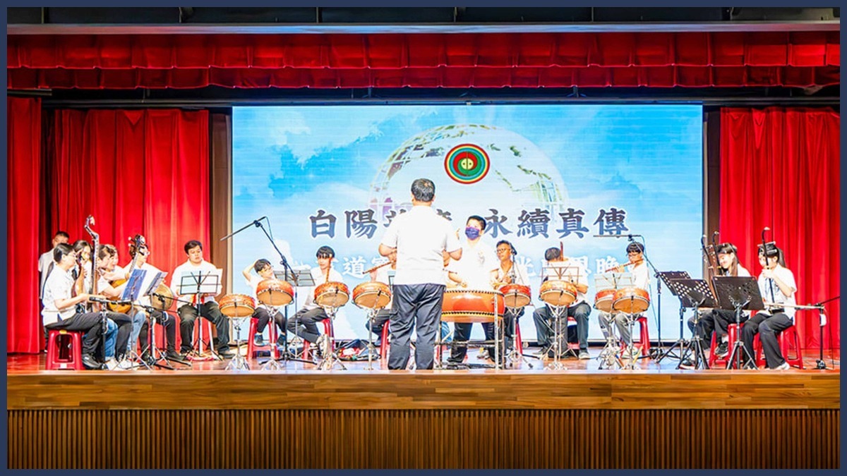 接著,由天彰、天衙、天帝、花東高雄的青少年帶來兩首活力四射的舞蹈:「白陽英雄」虎虎生風、「道傳世界」萬國九州,令人耳目一新。延續熱鬧的節奏,由聖樂團帶來精彩的歌曲猜謎,聖樂團演奏曲目(國語流行、台語懷舊、抖音、道歌),現場道親腦力激盪猜歌名,大家實力堅強,剛演奏一小段便有人舉手猜出歌名,道親們臥虎藏龍,各組積分加好加滿,真是好生佩服。