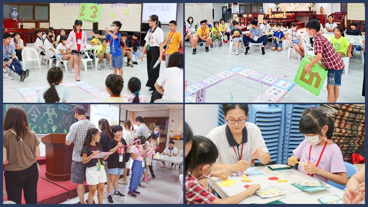 此次營隊課程與活動皆緊扣著「感恩」主題,在始業式中,尹順隆點傳師慈悲向小朋友們說明「天地君親師」五恩的意涵,之後各組所呈現的隊呼和晚會表演節目,也都呼應著五恩與感恩。