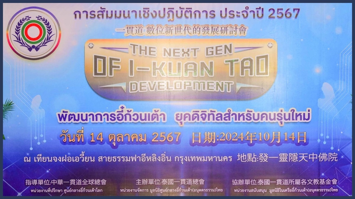 2024年10月14日,泰國一貫道總會假曼谷發一靈隱天中佛院世界光明慈善會舉辦了年度密集研討會暨工作坊,主題為「一貫道數位新世代的發展」。此次活動吸引了來自各組線超過250名參與者,為推動一貫道在數位時代的發展創造了積極平台;會議以「一貫薪傳歌曲」拉開序幕,象徵道務在數位時代的新起點。