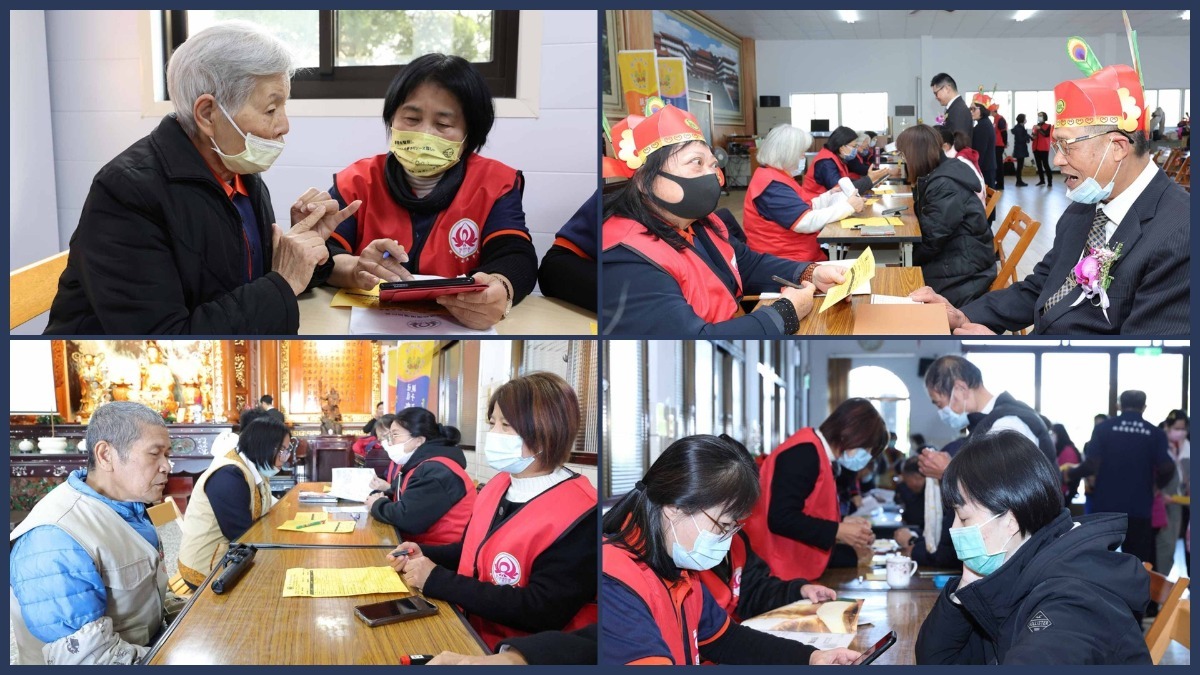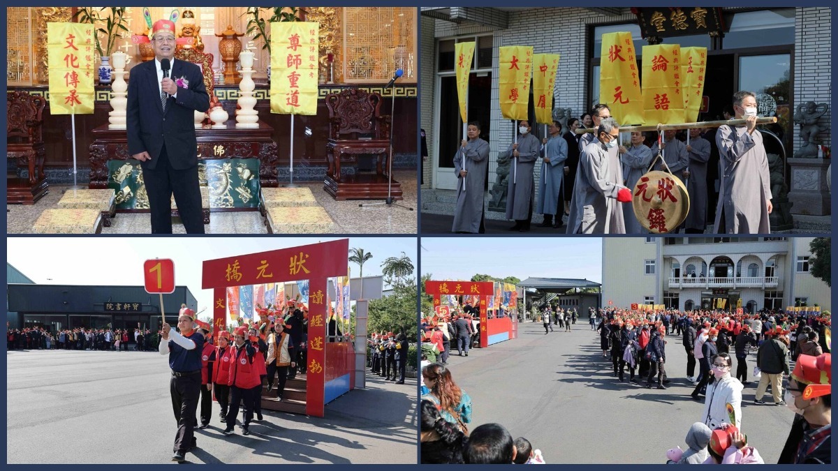 貴賓及絡繹不絕的道親與人群,陸續抵達佛院,八點時正,代表群王點傳師慈悲,鼓勵每位參加會考學子,都能以感恩的心、歡喜的心,全神應試,並祝福大會活動圓滿成功。隨後率領桃四區點傳師依序敲響狀元鑼,一敲狀元鑼,鑼聲通天響,讀經人才更多多;二敲狀元鑼,鑼聲再現續薪火;三敲狀元鑼,效聖法賢安邦又定國,隨後進行狀元會考。