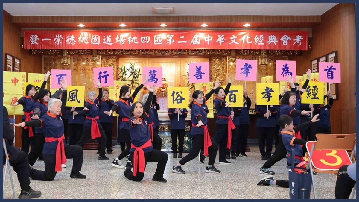 等待點榜時刻,穿梭著節目的表演,首先由一群年輕朝氣的學子,穿著繡有桃園道場徽章的紀念衫的紀念衫,表演「百孝經功夫操」,此時台上台下順著百孝經的音樂,一起拍手唱誦。接著,30位道親表演「學而時習君子風」,以友直、友諒、友多聞,帶動著修道的歡喜。第3個節目,是由學詮幼兒園及寶軒書院讀經班兒童表演「經典交響樂」,句句唱頌著古聖詩詞,令人讚嘆驚訝!