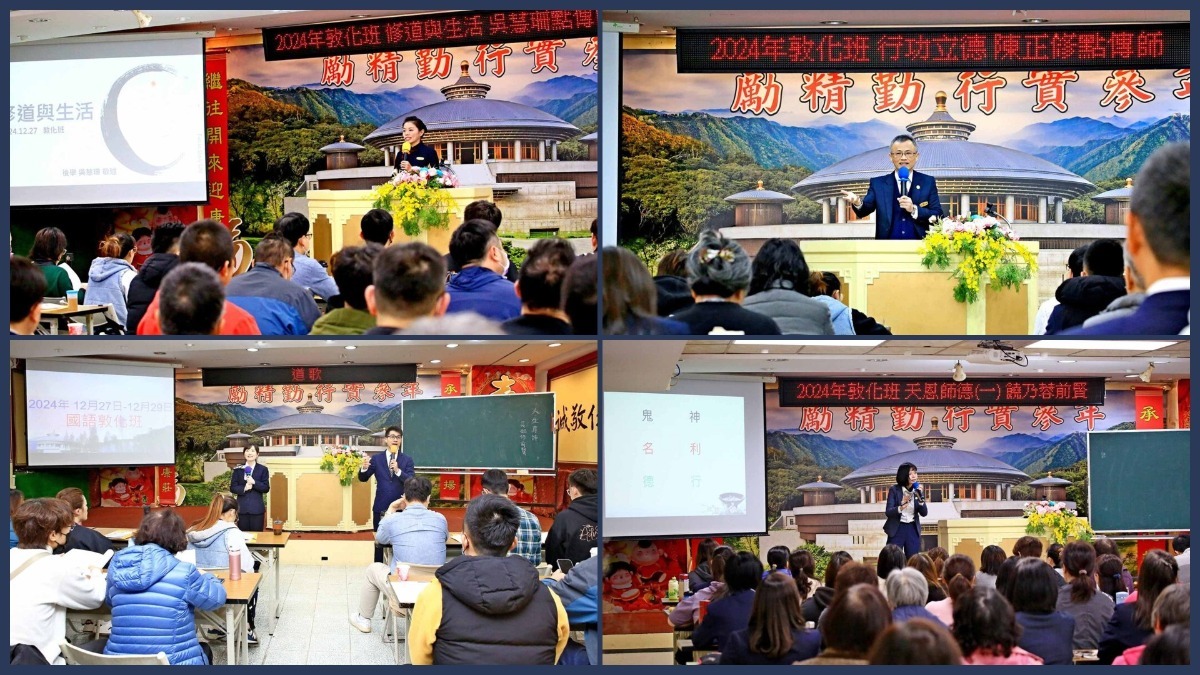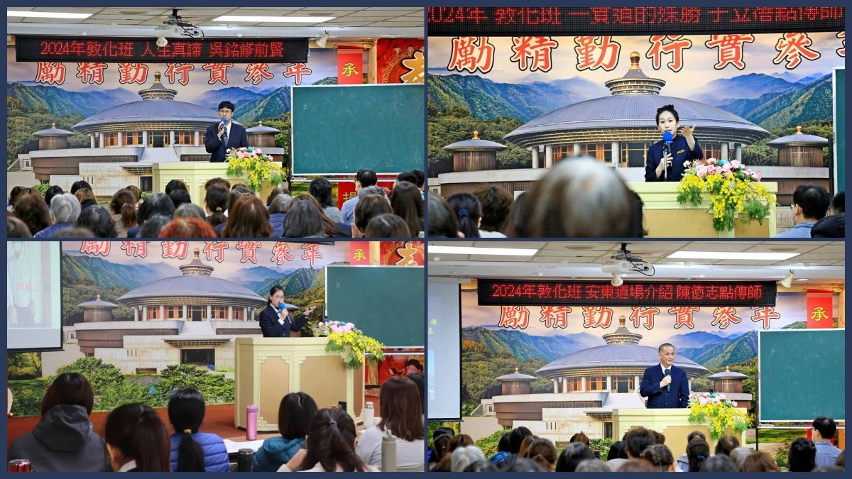 安東道場於2024年12月26日晚上至12月29日,在宏宗聖堂道學院舉辦敦化班法會,由總壇高維陽點傳師開班致詞,高點傳師慈悲:「這是一個天人共辦的班,能夠參加這樣的班是註記天盤的,是給九玄七祖加福加慧、加功德,給自己開智慧。相信大家透過三天的法會薰陶,都可以找到生命的本源,更能找到回家的路。」