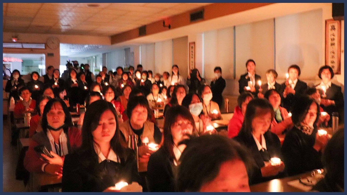 28日晚間,謝前人帶領「天恩師德晚會」,恭請前人從母燈引燈,慈光緩緩點亮眾人的心燈。前人慈悲:「和諧之道在知善惡因果,期勉班員在三天敦化班中能明理實修,出班後以三寶作為行事的根本。」