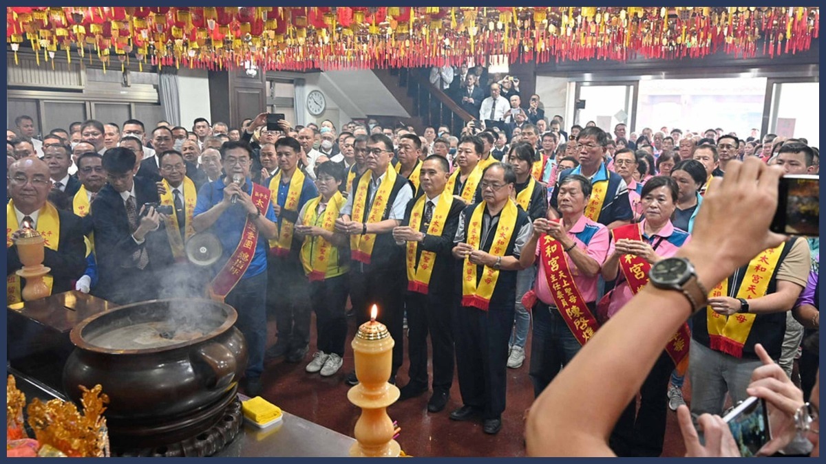 道親與信徒們滿懷虔誠之心,隨著太和宮陳啓煌主任委員帶領,與臺中市政府民政局吳世瑋局長、何欣純立法委員、張玉嬿議員、太平區許貴芳區長、崇正寶宮翁領導前人、北天宮林炳耀主任委員、玉皇宮吳忠賢常務監事、玉天關聖寶殿潘陽穩主任委員、廣興宮劉介文主任委員、聖和宮謝朝銓副主委、慈興宮洪朝仁主任委員、東村宮江清石主任委員、樂后宮陳秋寶主任委員、樂安宮林本元監察委員、東女慈聖宮黃清森主任委員等諸位長官、貴賓,帶領共同團拜,場面莊重而熱烈。